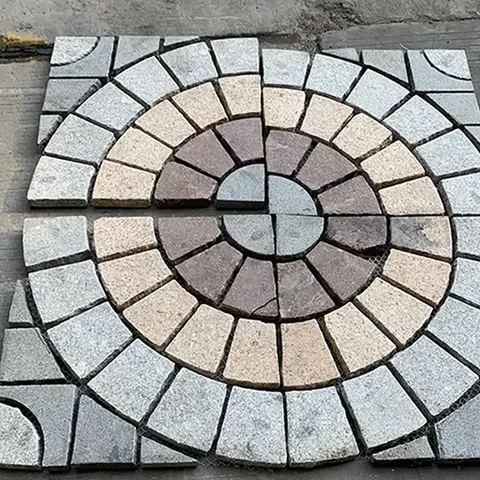 Exterior areia pedra granito jardim circular pavimentação pedras ao ar livre telhas fã forma blocos preço Filipinas